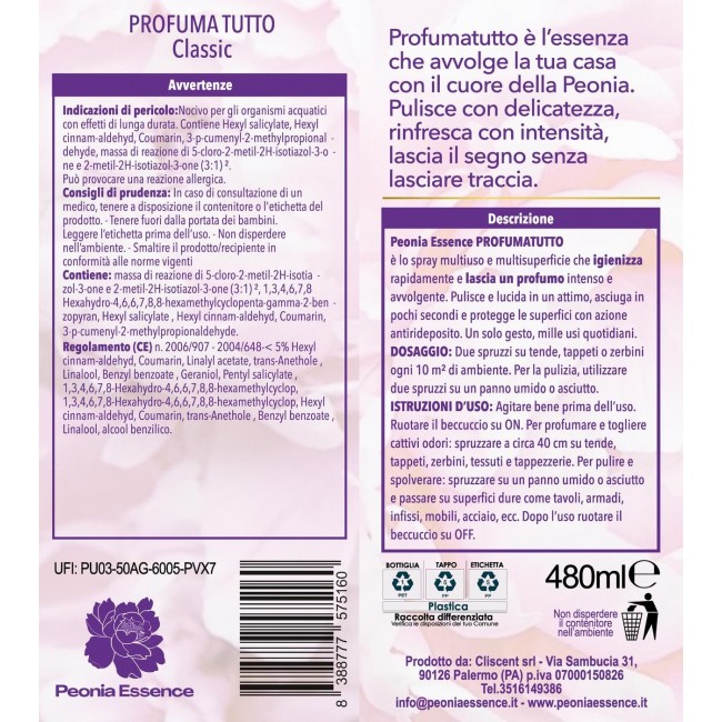 Peonia Essence Profumatutto 480 Ml Classic